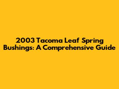 2003 Tacoma Leaf Spring Bushings: A Comprehensive Guide