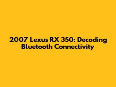 2007 Lexus RX 350: Does It Have Bluetooth?