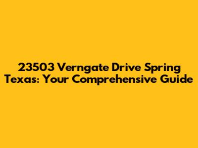 Hey guys! Ever wondered what it's like to live at 23503 Verngate Drive in Spring, Texas? Well, buckle up because we're about to dive deep into everything this address has to offer. From the cozy home itself to the vibrant community surrounding it, we've got all the juicy details you need. Whether you're considering moving here, curious about the neighborhood, or just plain nosy (we don't judge!), this guide is for you.