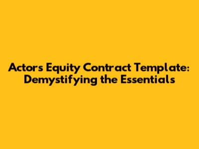 Actors Equity Contract Template: Demystifying the Essentials