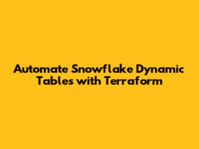Automate Snowflake Dynamic Tables With Terraform