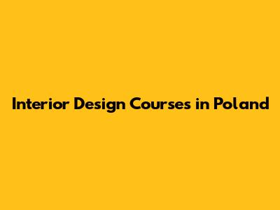 Best Interior Design Courses In Poland