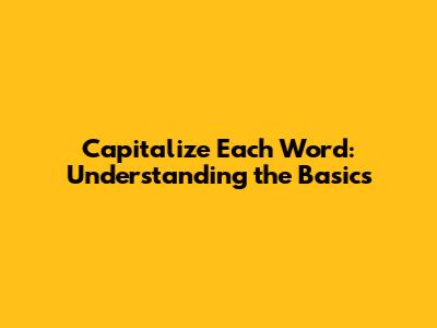 Hey guys, let's dive into something super handy in the world of writing and formatting: Capitalize Each Word. Ever stumbled upon text where every single word gets a capital letter, like "This Is An Example"? That's what we're talking about! It's a style choice, a formatting trick, and a lifesaver in specific situations. Understanding how and when to use this can seriously up your game, making your writing look polished and professional. We will explore the ins and outs of "Capitalize Each Word", from its core definition to when you should totally use it and when you should avoid it like the plague. It's all about making sure your writing is clear, consistent, and easy on the eyes. Trust me, learning this is way easier than trying to remember all those grammar rules from school (though it helps a bit!).