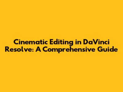 Cinematic Editing In DaVinci Resolve: A Comprehensive Guide