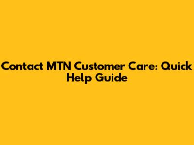 Contact MTN Customer Care: Quick Help Guide