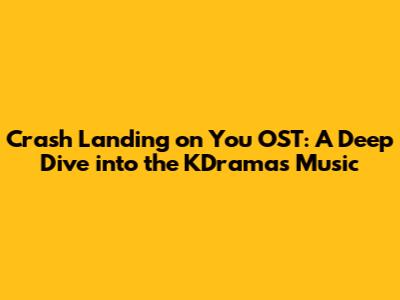 Hey guys! Let's dive into the magical world of the "Crash Landing on You" OST. This isn't just a collection of songs; it's the heart and soul of one of the most beloved KDramas ever. The music amplifies every emotion, making those heart-fluttering moments even more intense and those tear-jerking scenes absolutely unforgettable. Trust me, once you start listening, you'll be hooked!