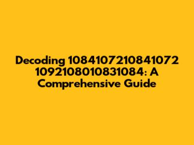 Decoding 1084107210841072 1092108010831084: A Comprehensive Guide