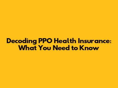 Decoding PPO Health Insurance: What You Need To Know