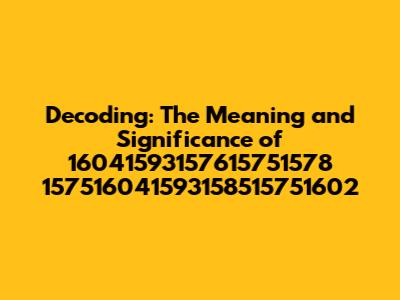 Decoding: The Meaning And Significance Of 16041593157615751578 157516041593158515751602
