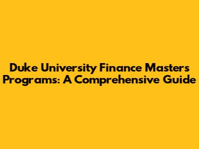 Duke University Finance Masters Programs: A Comprehensive Guide