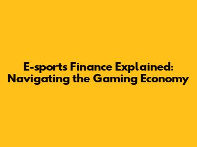 E-sports Finance Explained: Navigating The Gaming Economy