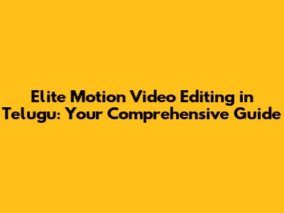 Elite Motion Video Editing In Telugu: Your Comprehensive Guide