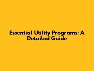 Essential Utility Programs: A Detailed Guide