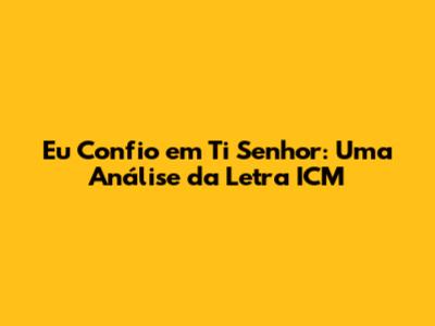 Eu Confio Em Ti Senhor: Uma Análise Da Letra ICM