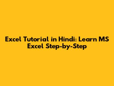Excel Tutorial In Hindi: Learn MS Excel Step-by-Step