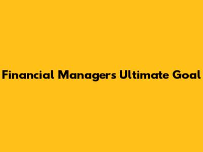 Financial Manager's Ultimate Goal