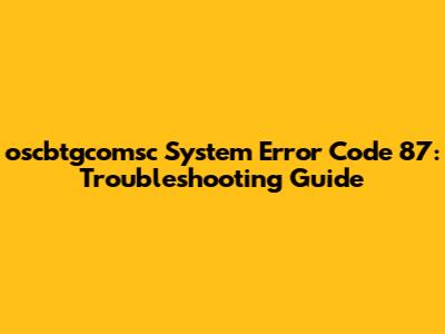 First off, let's get a handle on what this error code actually signifies. The oscbtgcomsc system error code 87 typically points to an issue with the parameters you're passing to a system function. In simpler terms, it means the command you're trying to execute isn't quite right – something's missing, incorrect, or out of place. This can occur in a variety of scenarios, making it a bit tricky to pinpoint the exact cause right off the bat.