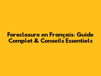 Foreclosure En Français: Guide Complet & Conseils Essentiels