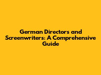 German Directors And Screenwriters: A Comprehensive Guide