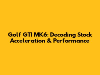Hey everyone, let's dive into the Golf GTI MK6 and talk about something every car enthusiast is curious about: stock acceleration. If you're a proud owner of a MK6 GTI, or maybe you're thinking about joining the club, understanding its performance straight from the factory is key. We're going to break down what you can expect in terms of 0-60 mph times, quarter-mile runs, and the overall driving experience when your GTI is in its original, untouched state. Let's get into it, shall we?
