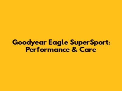 Goodyear Eagle SuperSport: Performance & Care