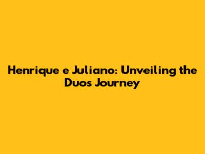 Henrique E Juliano: Unveiling The Duo's Journey