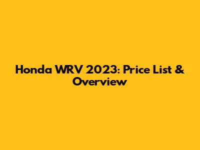 Honda WRV 2023: Price List & Overview