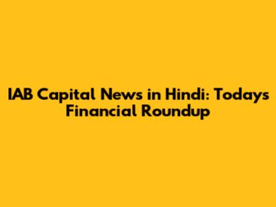 IAB Capital News In Hindi: Today's Financial Roundup