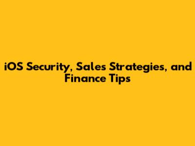 IOS Security, Sales Strategies, And Finance Tips