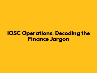IOSC Operations: Decoding The Finance Jargon