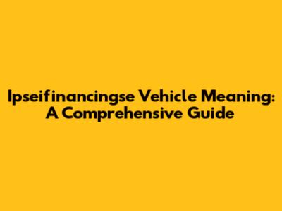 Ipseifinancingse Vehicle Meaning: A Comprehensive Guide