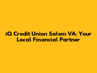 Let's dive into everything you need to know about iQ Credit Union in Salem, Virginia! If you're on the hunt for a reliable financial institution that feels more like a community than just a bank, you've landed in the right spot. We're going to cover what makes iQ Credit Union stand out, from its services to its commitment to the Salem, VA community. So, stick around and get the lowdown on how iQ Credit Union could be the perfect fit for your financial needs!