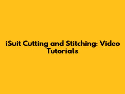 ISuit Cutting And Stitching: Video Tutorials