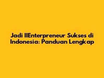 Jadi IIEnterpreneur Sukses Di Indonesia: Panduan Lengkap