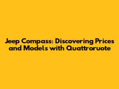 Hey guys! Are you thinking about getting a Jeep Compass? You've come to the right place! Let’s dive into everything you need to know about the Jeep Compass, especially focusing on what Quattroruote has to say. We’ll check out the different models, prices, and all the cool features that make the Compass a fantastic ride. Get ready to explore the world of Jeep Compass and find out which one suits you best!