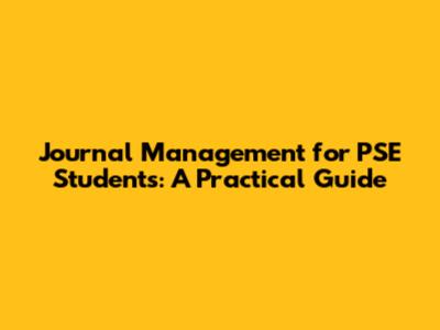 Journal Management For PSE Students: A Practical Guide