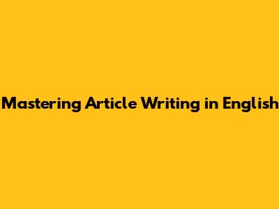 Mastering Article Writing In English