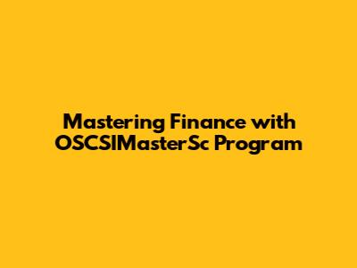 Mastering Finance With OSCSIMasterSc Program