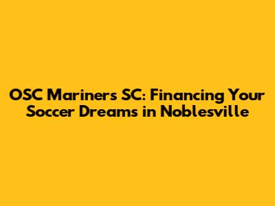 OSC Mariners SC: Financing Your Soccer Dreams In Noblesville