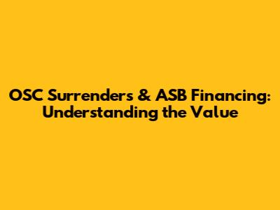 OSC Surrenders & ASB Financing: Understanding The Value