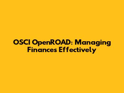 OSCI OpenROAD: Managing Finances Effectively