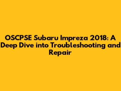OSCPSE Subaru Impreza 2018: Troubleshooting & Repair