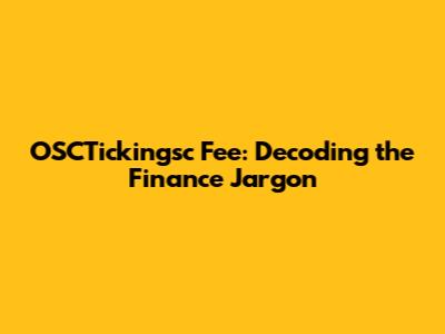 OSCTickingsc Fee: Decoding The Finance Jargon