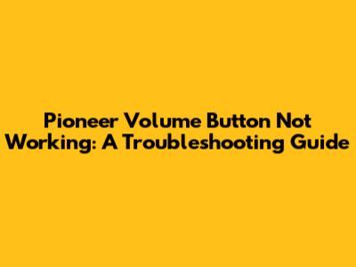 Pioneer Volume Button Problems: Quick Fixes & Troubleshooting