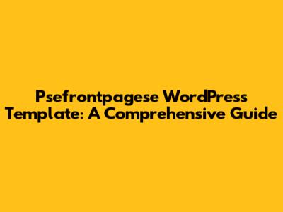 Psefrontpagese WordPress Template: A Comprehensive Guide