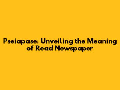 Pseiapase: Unveiling The Meaning Of 'Read Newspaper'