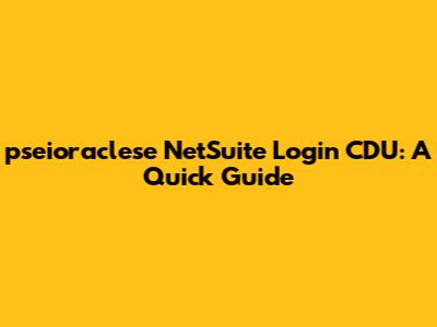 Pseioraclese NetSuite Login CDU: A Quick Guide