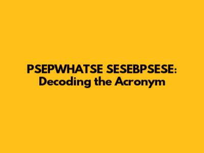 PSEPWHATSE SESEBPSESE: Decoding The Acronym
