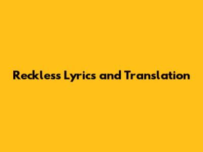 Reckless Lyrics And Translation: Full Details