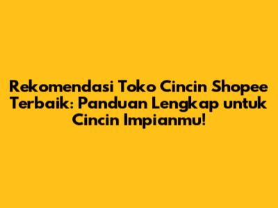Guys, lagi cari cincin yang pas buat gaya sehari-hari atau bahkan buat momen spesial? Jangan khawatir, karena rekomendasi toko cincin Shopee terbaik ini hadir buat kamu! Shopee memang surganya belanja online, dan pilihan cincinnya juga bejibun. Tapi, saking banyaknya, kadang bingung juga, kan, harus mulai dari mana? Nah, artikel ini bakal jadi panduan lengkap kamu buat nemuin cincin impian yang sesuai budget, gaya, dan kualitas yang kamu mau. Kita bakal bahas toko-toko cincin di Shopee yang udah terpercaya, punya reputasi bagus, dan pastinya menawarkan berbagai pilihan cincin yang bikin kamu klepek-klepek. Yuk, simak terus!